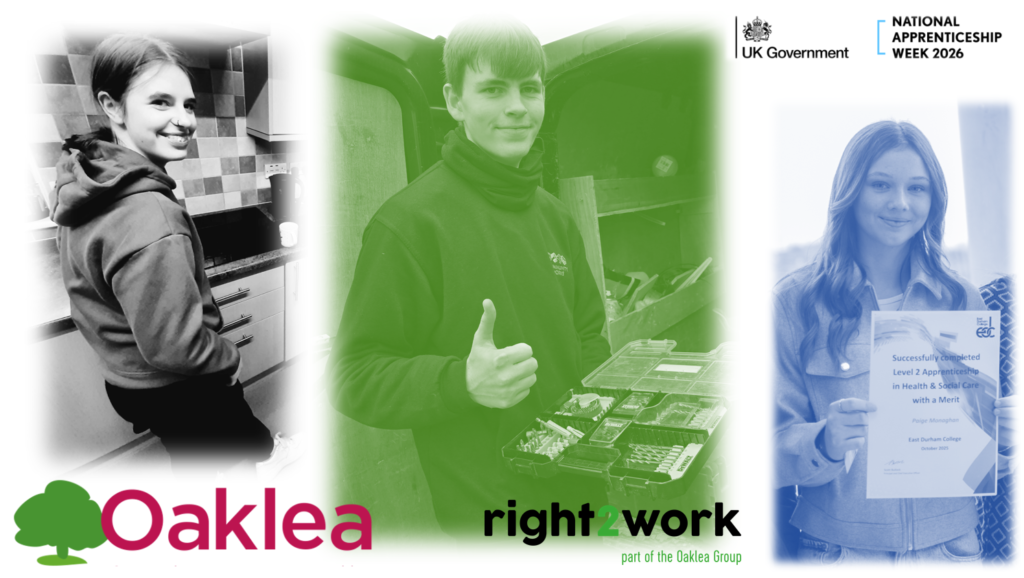 - Paige – she currently works with us in County Durham and as part of the Oaklea Apprentice Academy is studying her social care element through East Durham College in Peterlee)