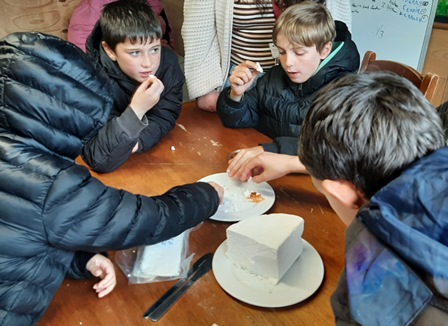 The farm is near Ravenstonedale, Kirkby Stephen. Here Farmer Frank Hunter shows Connor how the raw goats milk becomes cheese.