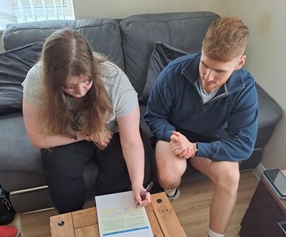 Here you can see Mollie signing tenancy forms with Andrew, the Management agent from the Housing Association at her new abode.