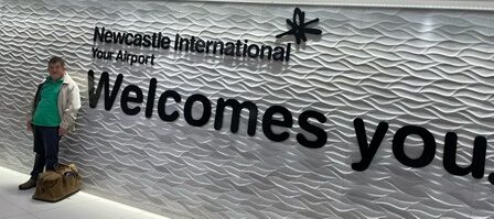 Newcastle Airport may have skipped on the red carpet for Mr Geoffrey – but they at least put up a big ‘welcome back’ sign! Lovely to have you back Geoffrey – looking forward to your next adventure….