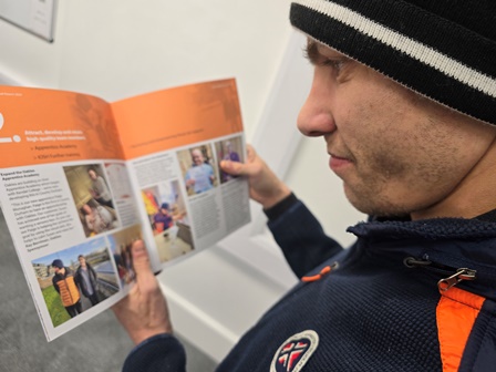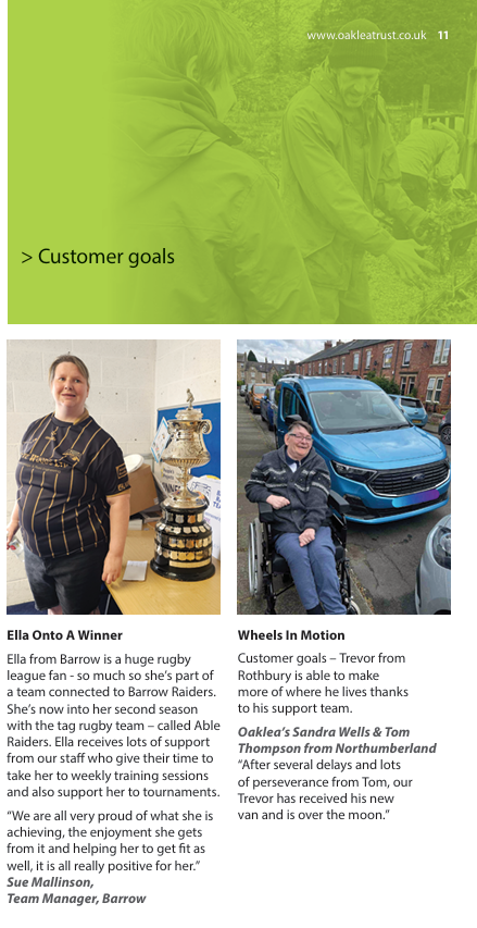Oaklea South Lakes supported, Robert Woods, loved showing the Annual Report to friends and family (especially Dad!). He can be seen holding up the publication with his picture! (and those in the know know Robert is equally known for his variety of headgear and teams…listen on!)
