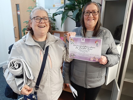 Nina Bale – who looks after the ‘Friends of Manna House’ (& the brains behind the Pool Pals idea) presented Alice with a thank you calendar – so she will be able to mark her big date with pool side destiny! (The event is Saturday 24th February at Kendal Leisure Centre 2 to 4pm)