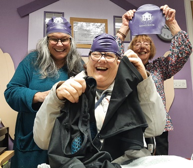 Alice with Andrea Aldridge & Nina Bale from Manna House – ready with beach towel, swimming caps, swimsuit and bundles of good vibes….(not optional!)