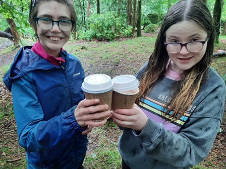 Creating shelters, putting up the bivvy and having a green tree canopy adventure – made all the sweeter with some camp fire hot chocolate – an essential to lift spirits and very very welcome!