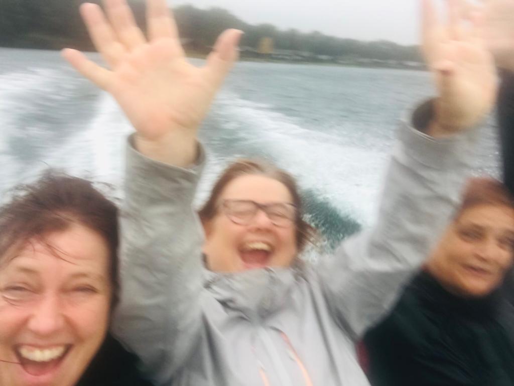 Oaklea’s very own ‘M‘, Karen ‘KK’ Kidd has more from the portals of MI6 (somewhere outside Kendal): “Memorable moments were made with Ruth & Alice. Both had a goal to achieve and wanted to go on a speed boat so I supported them to do it at Pine Lake. We got the bus (was it a double decker like in ‘Live & Let Die’?) there and back to Pine Lake near Carnforth. Both had an amazing time & it truly brightened up a wet day.”