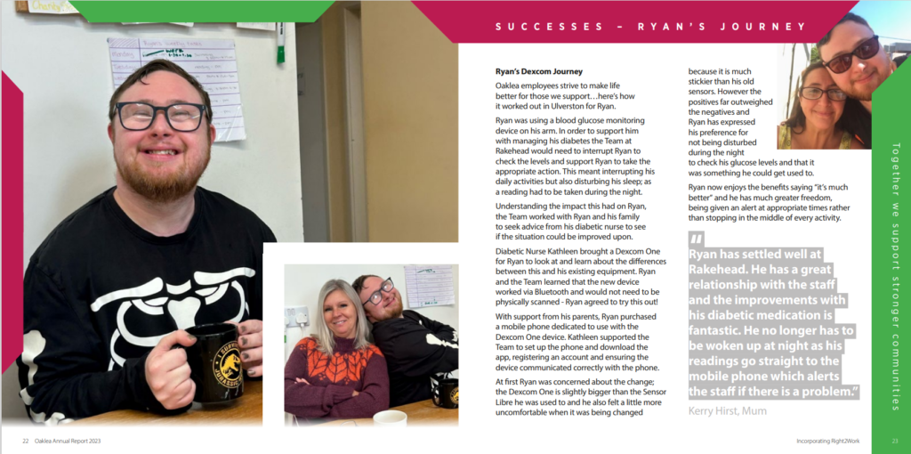 One of the stories we featured in the Annual Report was Ryan’s journey. He lives with us in Ulverston and has diabetes. It means he was often waking in the night -which also had an impact of our support teams too. Here’s Registered Manager for Furness, Sue Millington: