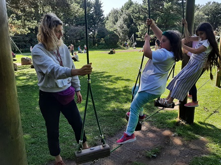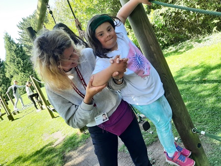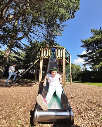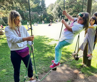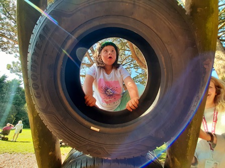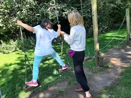 Oaklea Support Anna caused much amusement to Esme – after Esme clambered down from the big rope frame…Anna got in a bit of a tangle! These two simply love hanging around together – clearly!